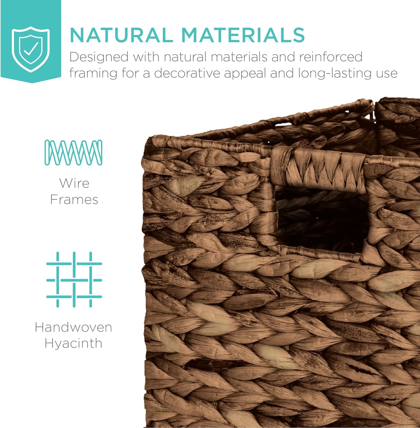 Best Choice Products 10.5x10.5in Pack of 5 Cube Storage Baskets, Water Hyacinth Multipurpose Collapsible Organizers, Handwoven Laundry Totes for Laundry, Living Room, Kids Room & Nursery - Brown