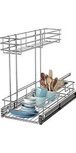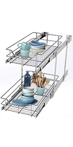 2 Tiers drawer cabinet organization provides the convenience and versatility of two shelves of slide out storage.